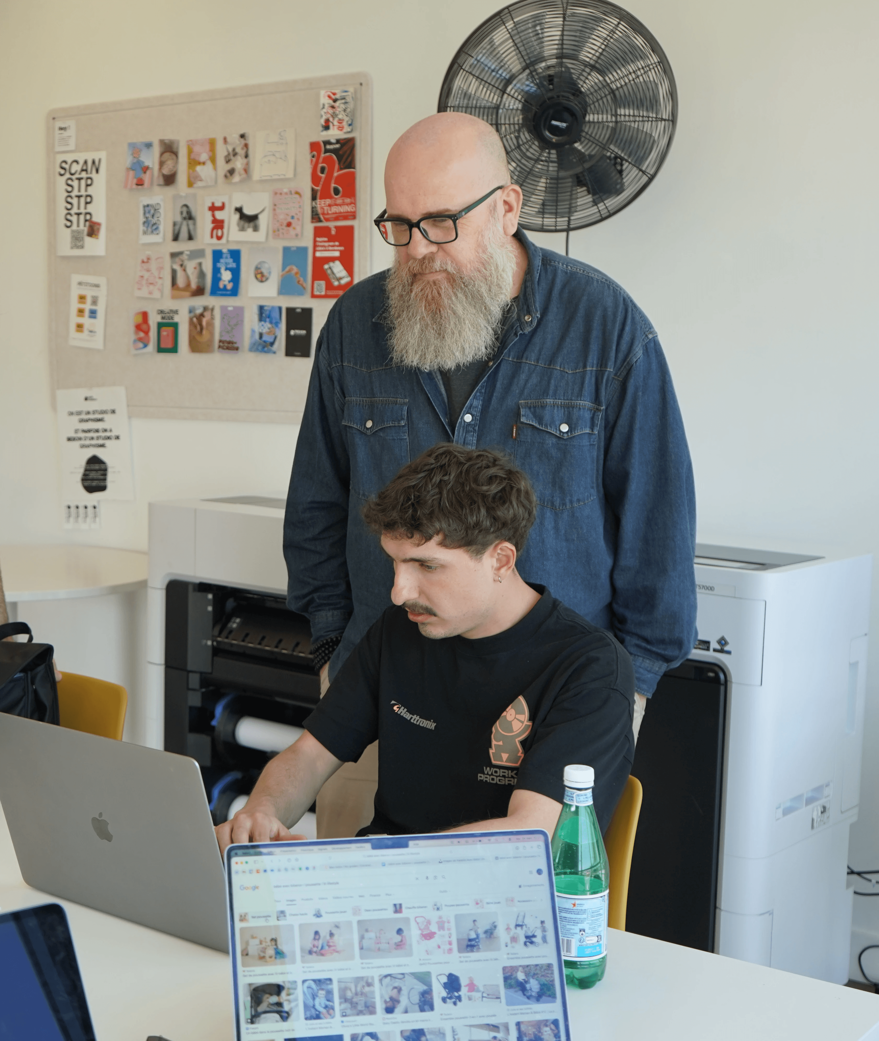 Nous travaillons ensemble sur votre brief, moi pour cadrer la stratégie et poser les bons enjeux, le jeune créatif pour identifier les codes visuels actuels de votre secteur. Vous repartez avec un brief précis et validé par les deux profils qui vont travailler sur votre projet.